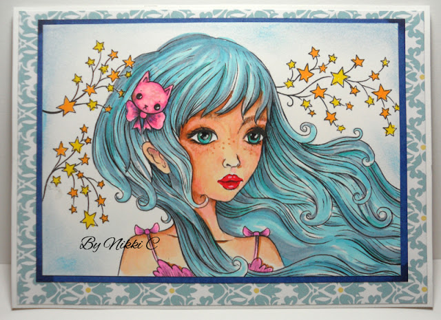 ReplyDeleteWow Nikki! So much gorgeousness in one post. Superb colouring of the images, especially their hair. I want blue hair like that!! The first card is a really lovely card design with that wonderful topper. The postcards and matching tag just blow me away. Good luck with the challenges although they're all winners to me.